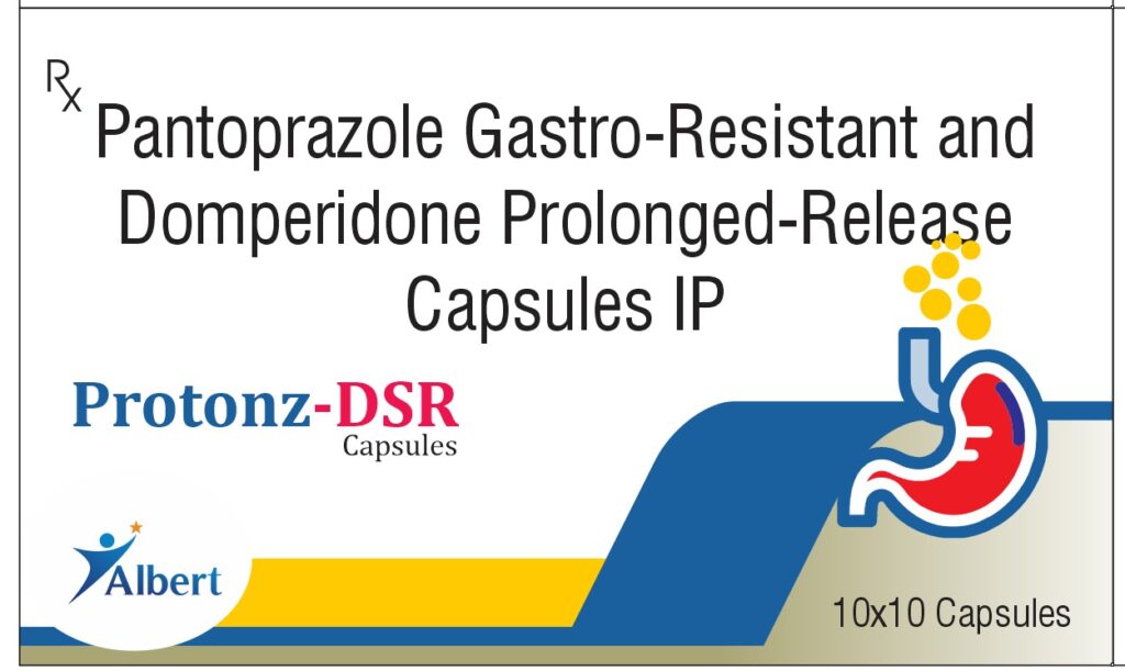 protonz DSR capsules  is a combination of two medicines: Domperidone and Pantoprazole. Domperidone is a prokinetic which works on the upper digestive tract to increase the movement of the stomach and intestines, allowing the food to move more easily through the stomach. Pantoprazole is a proton pump inhibitor (PPI) which works by reducing the amount of acid in the stomach which helps in the relief of acid-related indigestion and heartburn.
